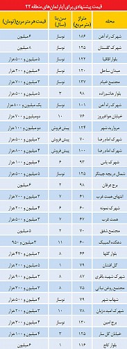 قیمتها متفاوت است از متري یک میلیون و 800 هزار تومان تا 10میلیون تومان. مبنای قیمتگذاری در این منطقه نزدیکی و دوری به دریاچه چيتگر است. دریاچهای که تاثیر قابل توجهی بر زمینها و آپارتمانهای يكدست نوساز منطقه 22 تهران در دو، سه سال اخیر گذاشته است.