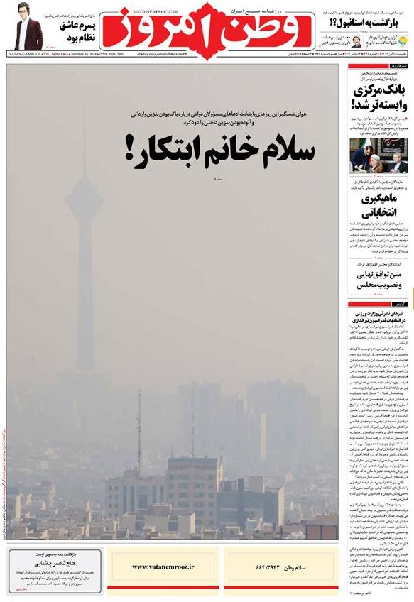 بر اساس برخی شنیده ها خانم ابتکار در لحظات انتهایی صفحه آرایی این روزنامه از کنار دفتر روزنامه رد می شده که چون راه دور بوده و نمیشده مسئولین این روزنامه به ایشان سلام کنند، این سلام را تیتر کرده اند! اصلا هم این سلام ربطی به ذوق زدگی وطن امروزی ها از آلوده بودن هوای تهران ندارد!