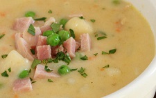وجود ژامبون در این سوپ ساده طعم بی نظیری به غذای ما می دهد .