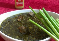 برای لعاب دارشدن خورش، چند تا از آن لوله های توخالی کرفس را هم با سبزی آن مخلوط می کنیم و با سبزی خرد کنی خردشان می کنیم . باید از سبزی قورمه کمی درشت تر باشد.