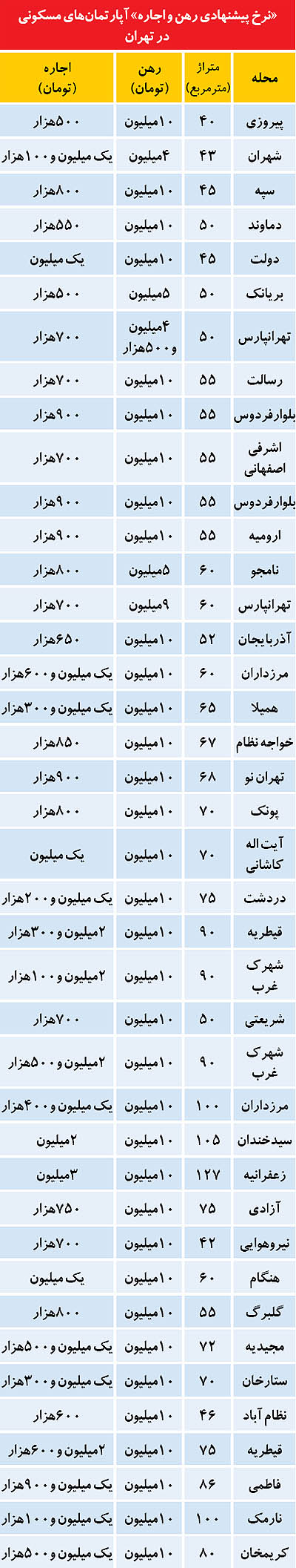 ليست آپارتمان‌هاي با رهن 10 ميليوني در تهران (جدول)