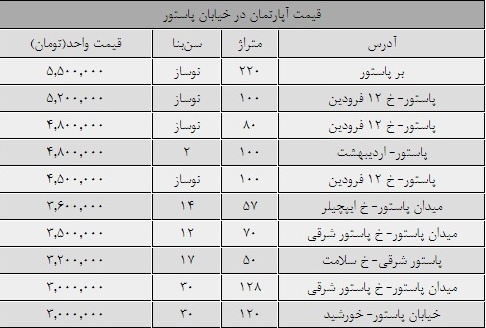 قیمت مسکن در خیابان پاستور تهران (+جدول)