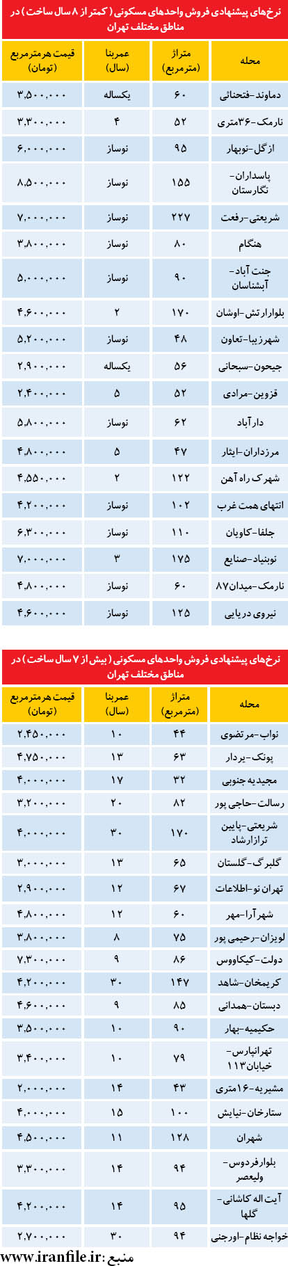 مناسب‌ترین آپارتمان‌ها برای خرید با وام مسکن (+جدول)ستون امروز نبض بازار تعدادی از واحدهای مسکونی فروشی را که در آخرین روز از سه ماه اول سال به بازار فروش مسکن در مناطق مختلف تهران عرضه شده از لحاظ قیمت مورد بررسی قرار داده و به دو جدول تقسیم‌بندی کرده است.