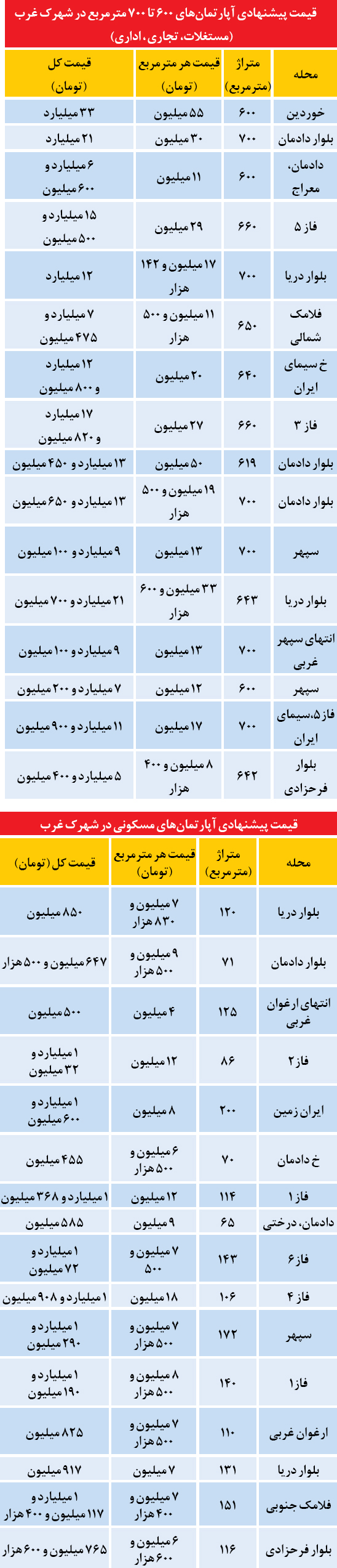 این در حالی است که متقاضی دیگری اعلام کرده خریدار یک واحد آپارتمان 180 تا 200 مترمربعی در طبقات بالای برج در منطقه 5 تهران، بالای بزرگراه همت، با پنجره‌های بزرگ، ویوی ابدی، خوش نقشه و نورگیر است.