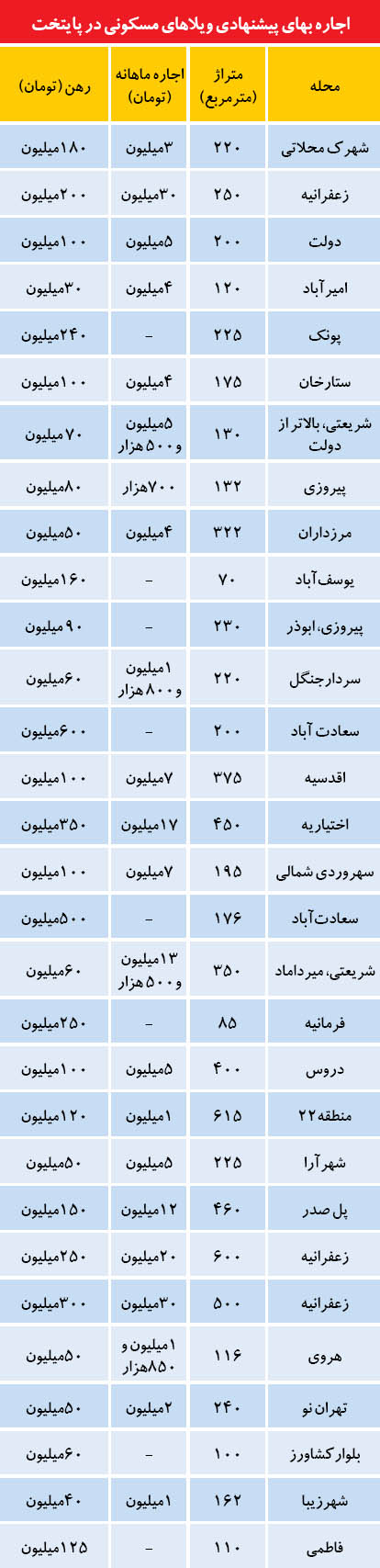 اما در سمت دیگر بازار اجاره، ویلاهای مسکونی طرفداران خاص و ویژه خود را دارد.