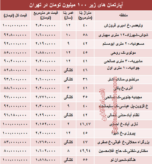با 100 میلیون هم می توان خانه خرید (جدول)