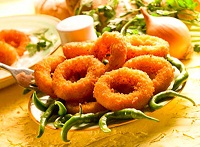 پیاز سوخاری در کنار غذاها برای تزیین بکار می رود که به غذا طعم می دهد و اشتهای انسان را به خوردن غذا زیاد می کند بخصوص اگر پیاز سوخاری حلقه ای در کنار میگو و غذاهای گوشتی استفاده شود. در این آموزش به سادگی میتوانید پیاز حلقه ای سوخاری (Onion ring)، درست کنید.