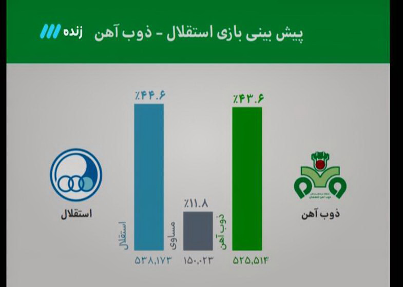 در حالی که در اولین نمایش های آمار پیامک ها چند درصدی به نفع ذوب آهن بود اما در نهایت استقلالی ها با امید بیشتری به قهرمانی در جام حذفی رای دادند و با یک درصد بیشتر پیش بینی پیروزی استقلال رای به قهرمانی تیم شان دادند.