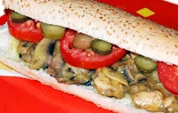 در این مرحله مرغ ها را اضافه کرده و تفت داده و بعد پنیر پیتزا را اضافه می کنیم. در این مرحله سس مایونز را با یک فنجان آب مرغ و بقیه ادویه اضافه کرده بر روی مواد می ریزیم و بعد یکی دو دقیقه خاموش کرده و مواد را وسط نان های ساندویچی ریخته و خیارشور برش زده را وسط ساندویچ ها می گذاریم.
