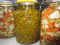 4) کلم، هویج، فلفل دلمه ای سبز، فلفل دلمه ای قرمز و فلفل سبز تند را به طور کامل خرد کرده، به بادمجان و سیر اضافه می کنیم. در صورتی که فلفل سبز مصرفی خیلی تند بود، مقدار آن را کمتر کنید.