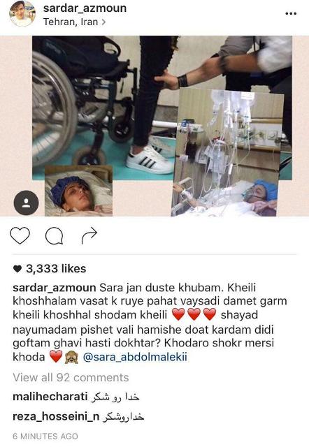 سردار آزمون بعد پیروزی در دیدار تدارکاتی برابر قرقیزستان از حال سارا عبدالمالکی غافل نبود و در پیامی از اینکه او سلامتی خود را بازیافته ابراز خوشحالی کرد.