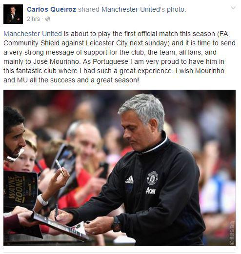 کارلوس کی روش سرمربی تیم ملی ایران با انتشار پیام فیس بوکی به حمایت از خوزه مورینیو پرداخت.