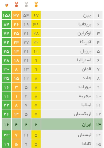 سیامند رکورد شکست ، طلا گرفت و ایران را تا سیزدهم بالا کشید(+جدول)