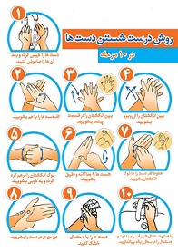 لای انگشتان را از قسمت پشت دست شسته و سپس ‏انگشتان را از رو‌به‌رو  بشورید. نوک انگشتان‌تان را در هم گره کنید و بعد از شستشوی آنها، شست‌ها را هم جداگانه و و دقیق بشورید. خطوط کف دست‌ها را با نوک انگشتان و دور مچ هر دو دست را خوب بشورید و دست‌ها‌ی‌تان را با یک دستمال تمیز خشک کنید. در نهایت با همان دستمال شیر آب را ببندید و آن را در سطل آشغال بیندازید.
