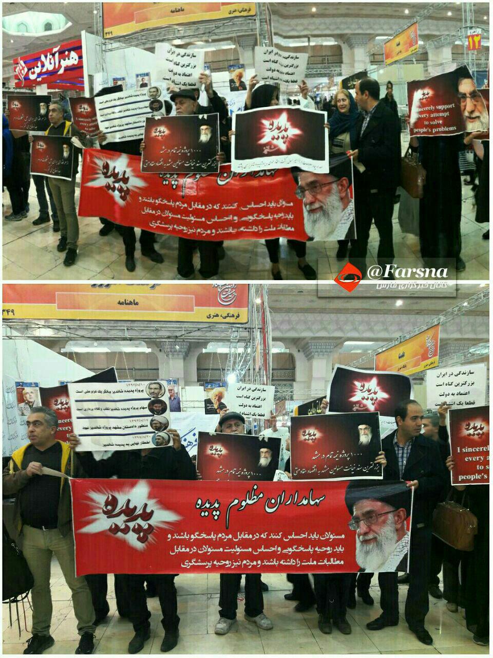 تجمع اعتراضی سهامداران پدیده در نمایشگاه مطبوعات (عکس)
