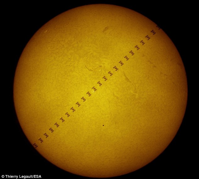 به گزارش ایران به نقل از دیلی میل، ایستگاه فضایی با سرعت پنج مایل بر ثانیه روز شنبه ی گذشته از مقابل خورشید گذشته است.