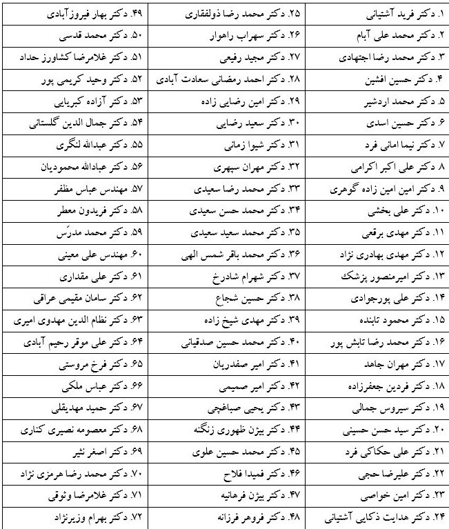 اسامی امضاکنندگان: