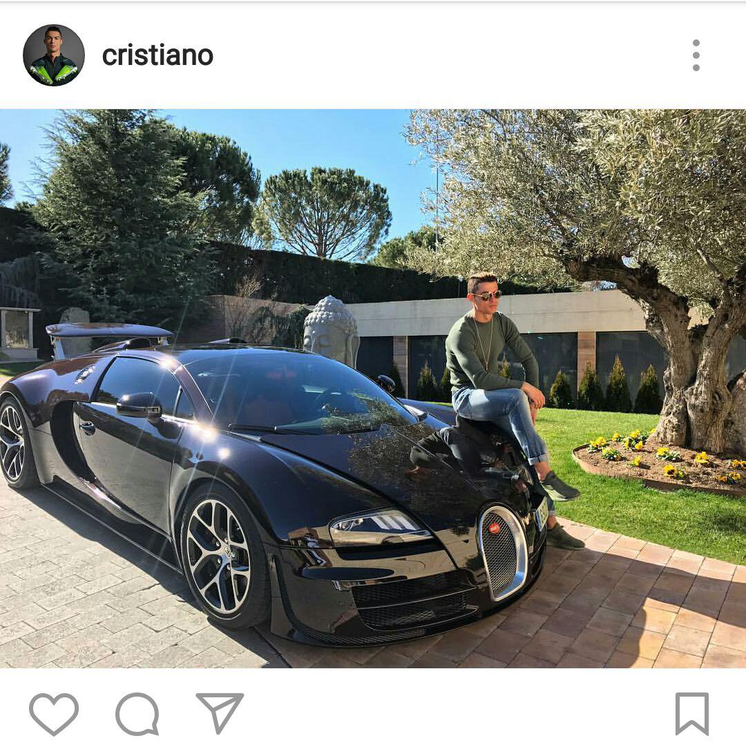 کریستیانو رونالدو در جدیدترین پست اینستاگرامی خود، عکسی از خود کنار بوگاتی ویرون جدیدش که سریع ترین خودروی حال حاضر دنیاست منتشر کرده است.به گزارش "ورزش سه"، 268 مایل بر ساعت سرعت این خودرو و قیمت آن نیز 1.7 میلیون پوند است. این اولین بار نیست که رونالدو از خود کنار ماشین های متعددی که دارد عکس منتشر می کند.