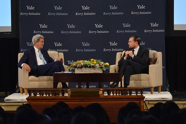 به گزارش مهر به نقل از تایم، دی کاپریو بار دیگر قدرتش را در خدمت به تغییرات آب و هوایی قرار داد و با حضور در کنفرانس تغییرات آب و هوایی دانشگاه ییل، با حضور روی صحنه به گفتگو با جان کری معاون رییس جمهوری پیشین آمریکا نشست.