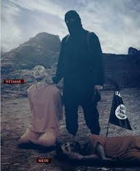 تصویر جدید منتشر شده توسط حسابهای کاربری منتسب به داعش در توییتر، مسی و نیمار را نشان میدهد که در دستان داعش گرفتار شدند، مسی روی زمین افتاده و نیمار در حال گریه کردن است.