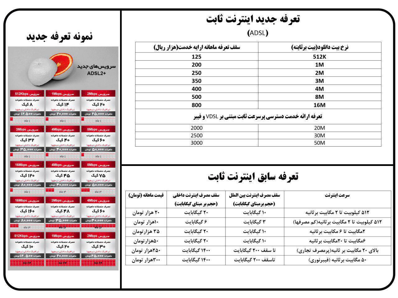 تعرفه های جدید اینترنت ابلاغ شد که در زیر قابل مشاهده است.