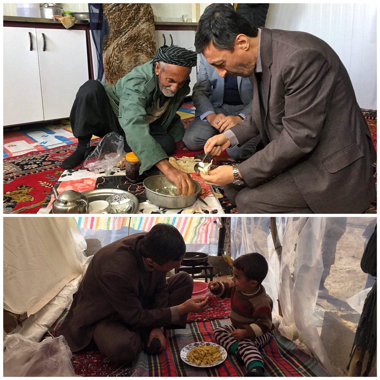 در این سفر، رئیس کمیته امداد امام خمینی (ره) هم سفره افراد زلزله زده نیز شد.