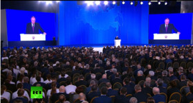 رئیس جمهوری روسیه سخنرانی سالانه خود را با تمجید از موفقیتهای روسیه در ایجاد ثبات،اتحاد و پیروزی بر چالشهای اخیر آغاز کرد.