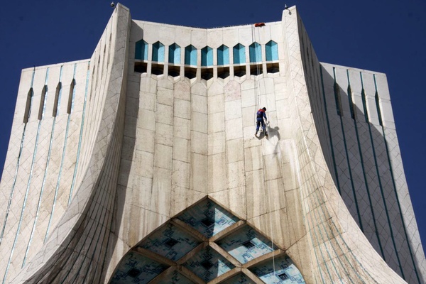 برج آزادی تهران درآستانه سال نو شست و شو شد.