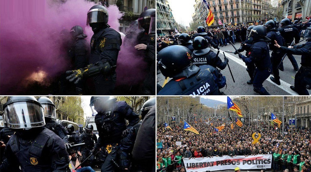 به گزارش فارس؛ هزاران نفر از مردم در کاتالونیا روز گذشته در حالی که پرچمهای نماد جدایی طلبی از اسپانیا را با خود حمل میکردند، در پی دستگیری «کارلس پوگدمونت» رئیس مخلوع ایالت کاتالونیا به خیابانها آمدند.