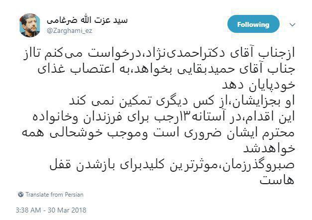 درخواست ضرغامی از احمدینژاد درباره بقایی
