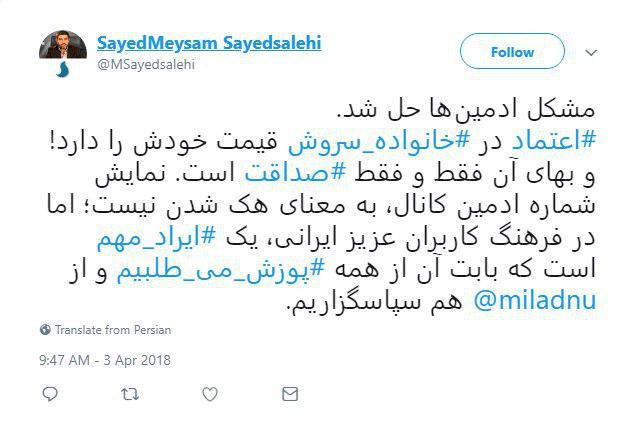 مدیرعامل پیام رسان سروش: نمایش شماره ادمین کانال،به معنای هک شدن نیست؛ اما یک ایراد مهم است که بابت آن از همه پوزش می طلبیم