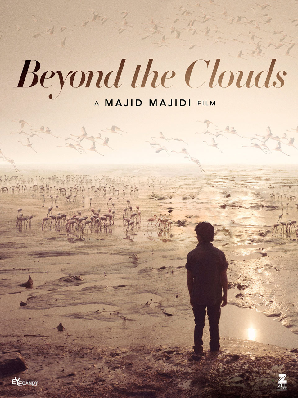 «آن سوی ابرها» داستان برادر (ایشان خاطر) و خواهری (مالاویکا موهانان) را روایت می‌کند که در منطقه زاغه‌نشین هند بزرگ شده‌اند. زمانی که تارا به اتهام قتل دستگیر می‌شود، رابطه‌ او با برادرش امیر به بوته آزمایش گذاشته می‌شود. ای.آر. رحمان آهنگساز و آنیل مهتا مدیر فیلمبرداری فیلم هر دو جزو چهره‌های مطرح سینمای هند هستند که در فیلم جدید مجیدی با او همکاری کرده‌اند.