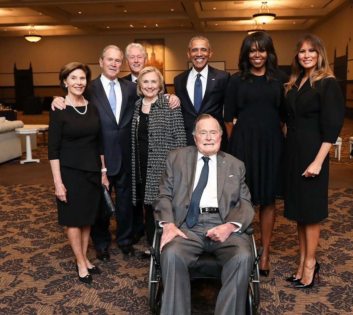 سران سابق آمریکا و همسران آنها در یک مراسم ختم (عکس)