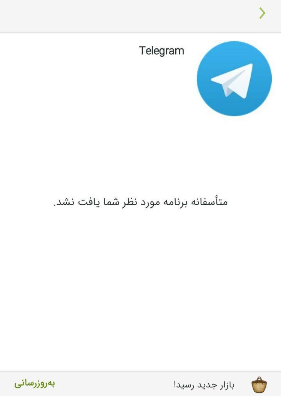 تلگرام بطور کامل از مارکت کافه بازار حذف شد و فقط از طریق گوگل پلی قابل دریافت است.