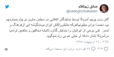 انتقاد زیباکلام از آتش زدن پرچم آمریکا در مجلس
