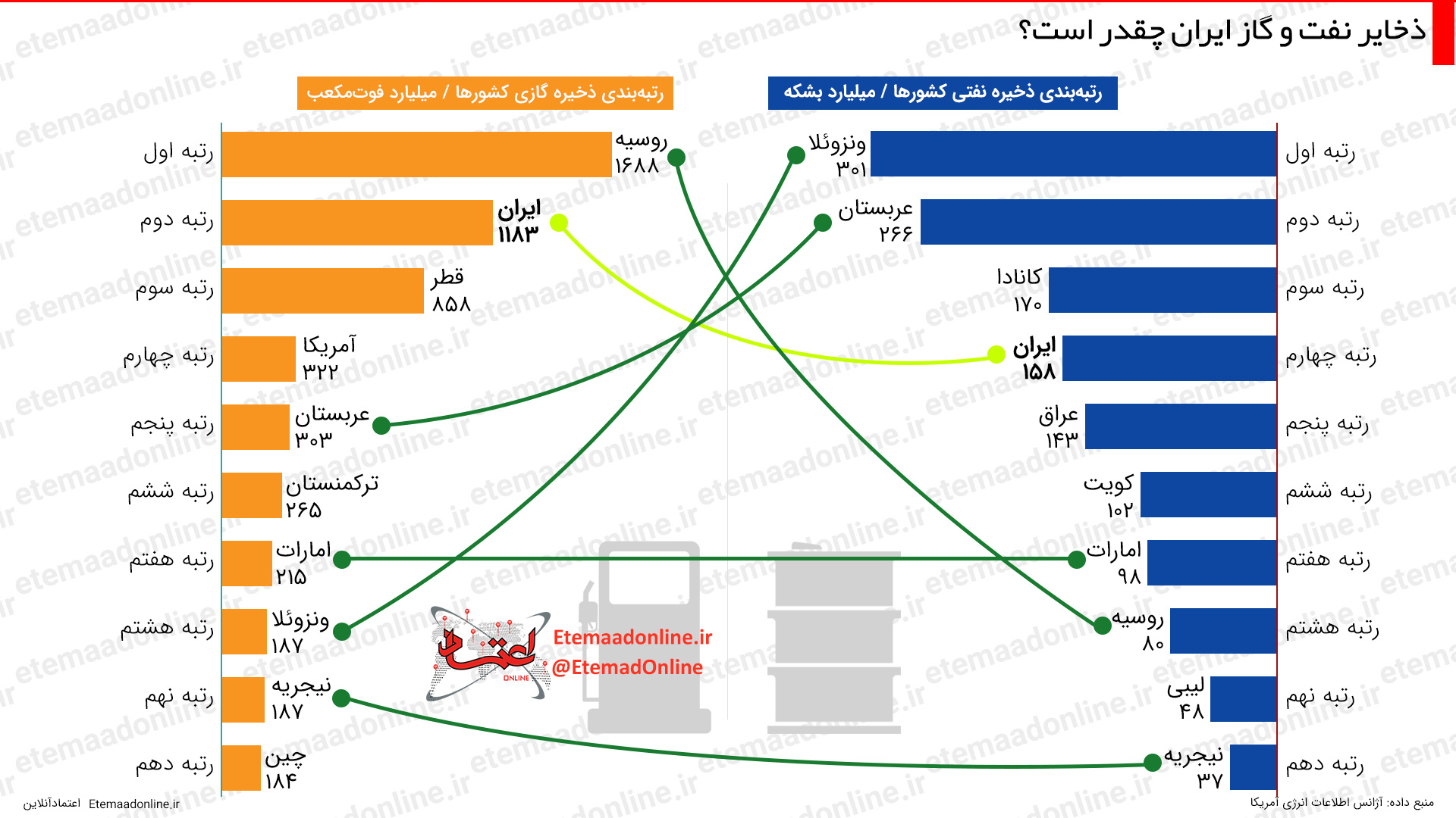 آژانس اطلاعات انرژی آمریکا اعلام کرد ایران دارای چهارمین ذخایر اثبات‌شده نفت خام و دومین ذخایر بزرگ گاز طبیعی جهان است.