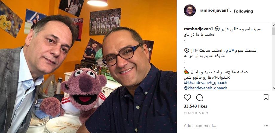 رامبد جوان این عکس را در صفحه اینستاگرامش منتشر کرد و از حضور مجید نامجو مطلق بازیکن پیشین فوتبال در برنامه قاچ خبر داد.