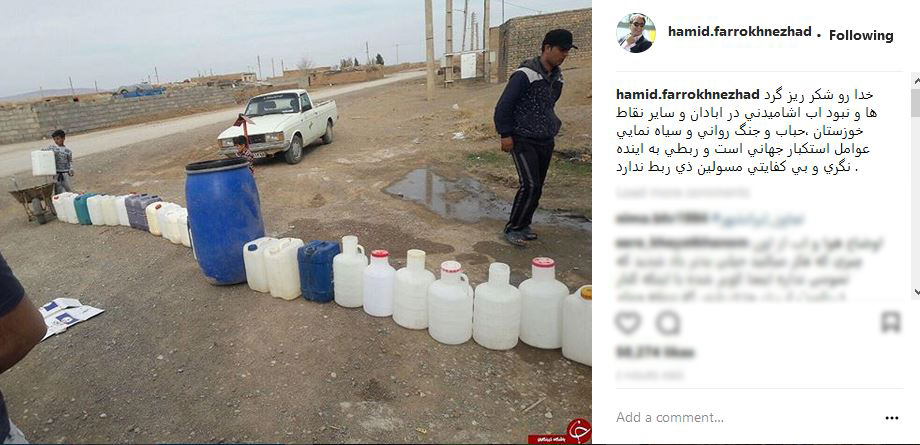 حمید فرخ نژاد در صفحه اینستاگرامش عکسی از وضعیت مردم آبادان منتشر کرد و نوشت: