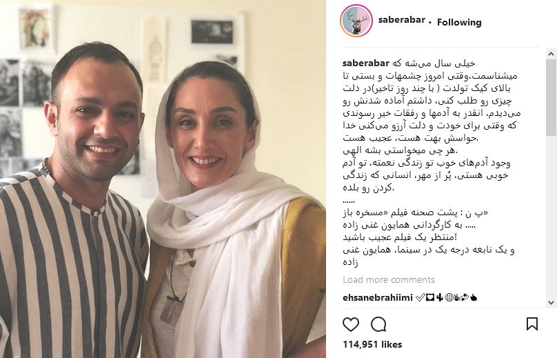صابر ابر در اینستاگرامش عکسی از هدیه تهرانی منتشر کرد و نوشت: