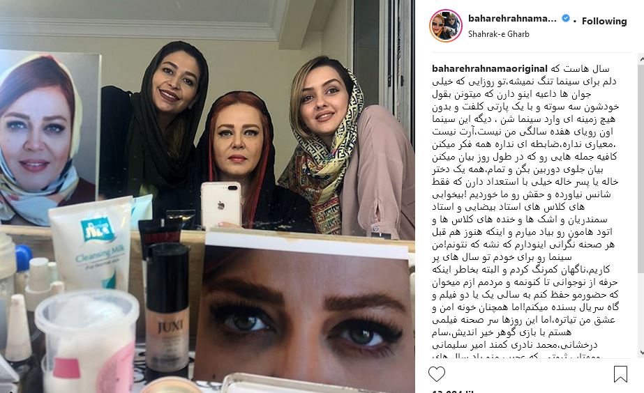بهاره رهنما بازیگر سینما و تلویزیون با انتشار این عکس در اینستاگرامش نوشت: