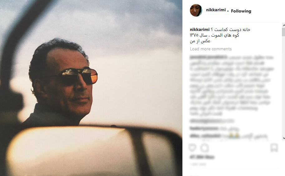 نیکی کریمی این عکس را از عباس کیارستمی در اینستاگرامش منتشر کرد و نوشت: خانه دوست كجاست ؟ كوه هاي الموت ، سال ١٣٧٥عكس از من