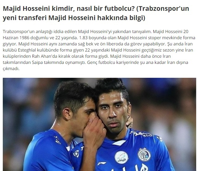 رسانه‌های معتبر ترکیه از نهایی شدن انتقال سید مجید حسینی به ترابزون اسپور خبر دادند.