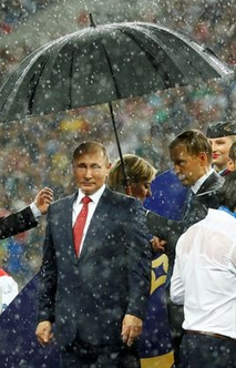 روسها چتری بزرگ را بالای سر رییس جمهور خود گرفته بودند تا پوتین خیس نشود. ماکرون ، رئیس جمهور فرانسه زیر باران مانده بود و خانم کیتاروویپچ رئیس جمهور کرواسی در حالی که خیس آب بود بازیکنان را در آغوش میگرفت.