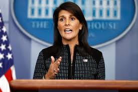هیلی مدعی شد: ایران مشروعیت خود را از راه لفاظی ساخته یا کسب کرده است. (ایران) کشورهای اروپایی و تمامی کشورهایی را که در توافق هسته ای دخیل بودند از اقدام های محتمل خود ترسانده است. ما فریب (اقدام های ایران را) نمی خوریم.