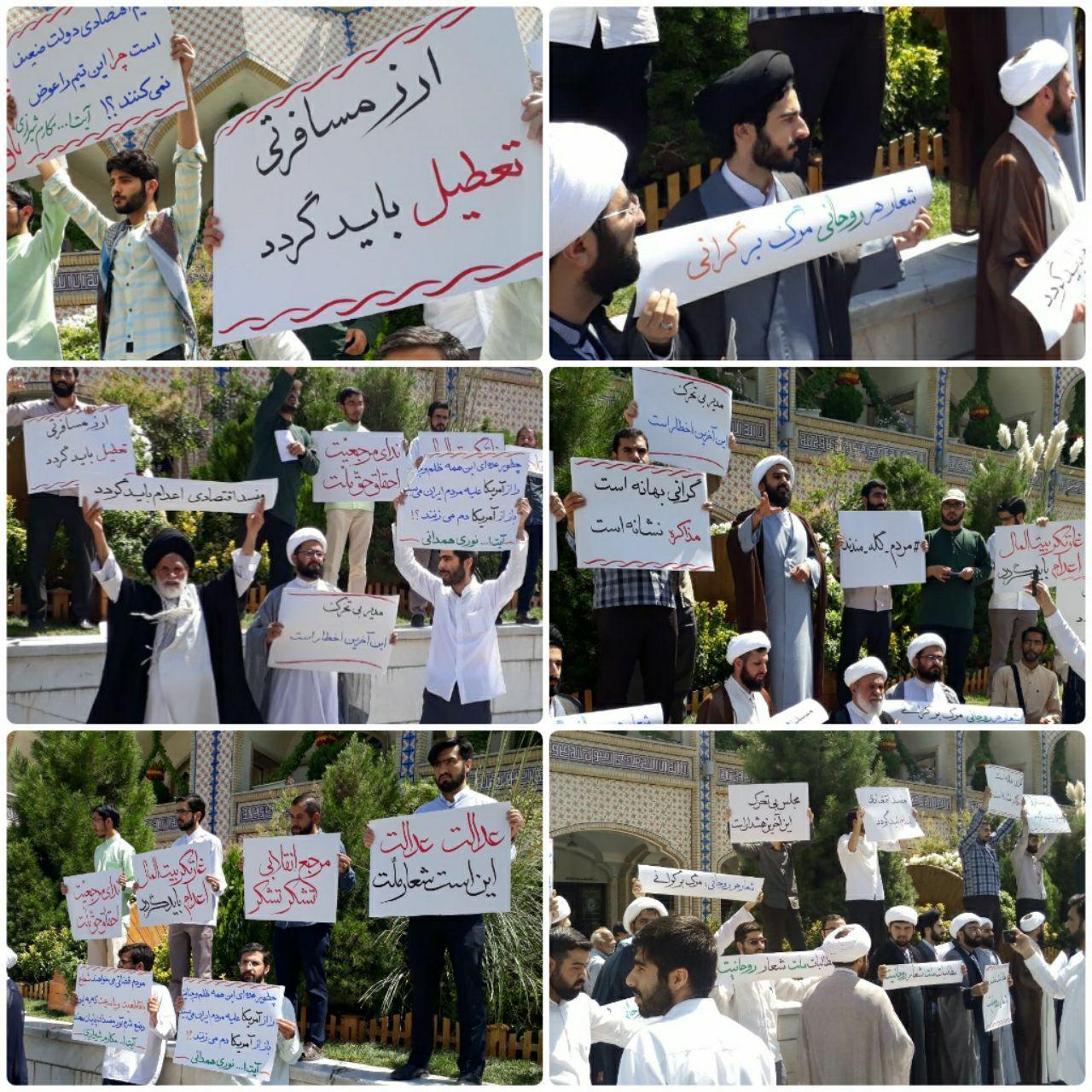 طلاب و روحانیون مشهدی بهمنظور حمایت از مواضع مراجع تقلید نسبت به وضعیت اقتصادی مردم تجمع کردند.