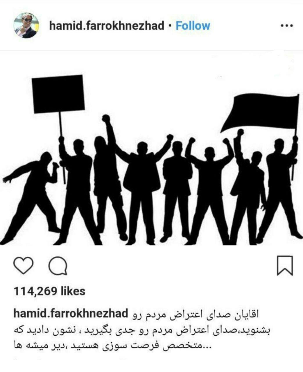 پست اینستاگرامی حمید فرخ‌نژاد درباره اعتراضات اخیر (عکس)