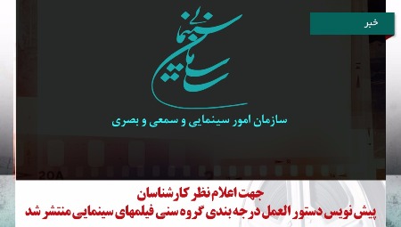 به گزارش عصرایران به نقل از روابط عمومی سازمان سینمایی، متن پیشنهادی این دستورالعمل جهت اخذ نظر کارشناسان امور فرهنگی، سینمایی، جامعه شناسی، روانشناسی، تربیتی و سایر صاحب نظران در پایگاه اطلاع رسانی سازمان سینمایی به نشانی cinema-org.ir منتشر شد.