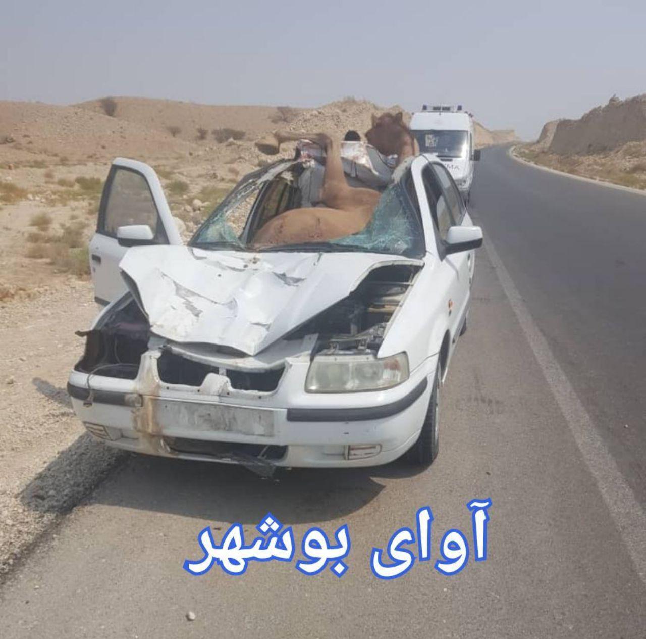 تصادف سمند و شتر در جاده رستاق بندرلنگه (عکس)