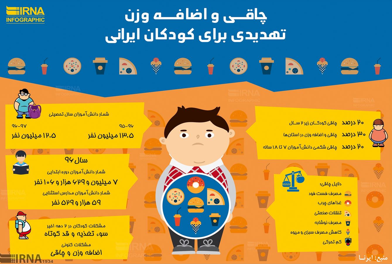 اینفوگرافی زیر قصد دارد تا به بررسی چاقی و اضافه وزن که تهدیدی برای کودکان ایرانی محسوب می شود بپردازد.
