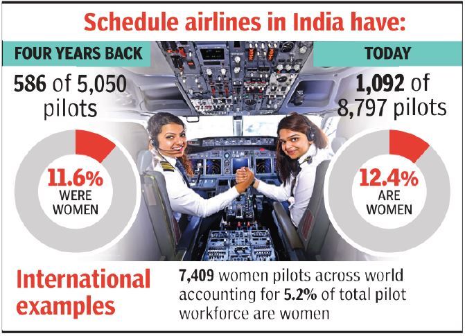رسانه هندی گزارش داد که با توجه به آمار حضور خلبانان زن در جهان این کشور دارای بالاترین تعداد خلبان زن در جهان است.